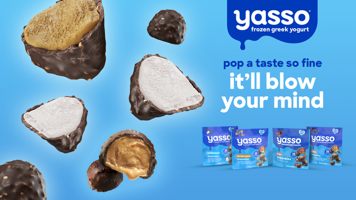 Yasso wanted to extend its ‘Ridiculously Better’ brand campaign into retail. Leading with the delicious creamy taste of its Greek yogurt treats, we created a suite of key visuals rooted in macro shots of Yasso bars and pints set against bright graphic backgrounds. I wrote the campaign headline, leaning into Yasso’s cheeky, confident tone. “Try a bite so fine it’ll blow your mind” included a fun catchy CTA to shoppers that stood out amongst ‘better for you’ competitors.